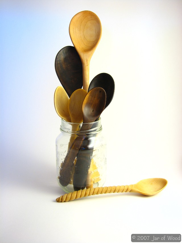 In looking for a better way to display the spoons I have made, I have been experimenting with lighting and supporting objects. Some have turned out beautifully, others not so great. I liked many of them enough that I thought I should add a separate gallery.