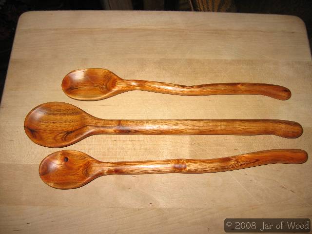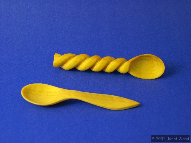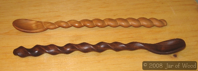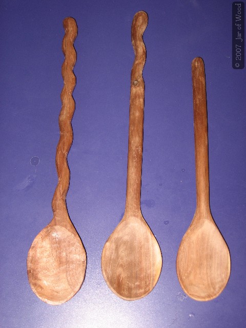 The longer I continue to carve, my spoons take on more of a life of their own. Going from the classic straight handled mixing spoon, to spoons with spirals and kinks, I like to keep a record of what I have made. My apologies, these spoons are not for sale.